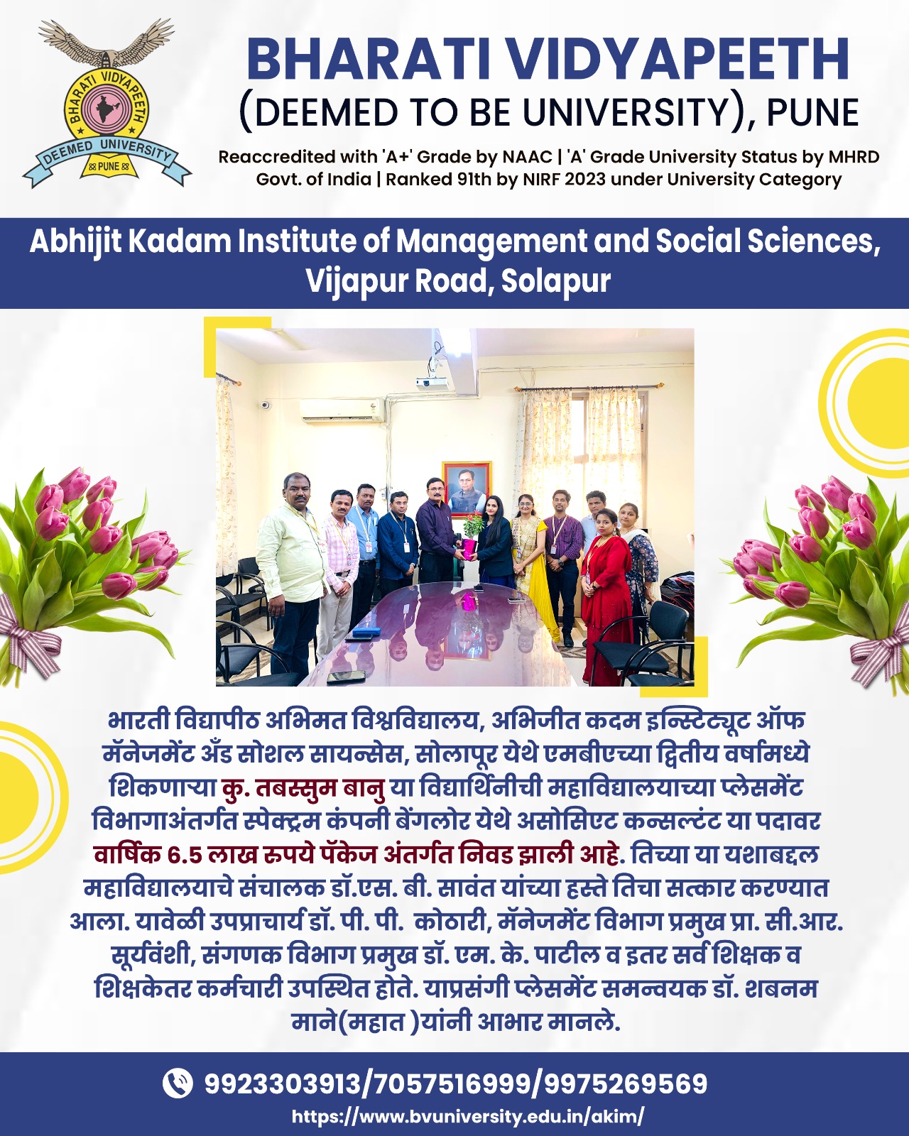 Miss. Tabbasum Banu have been selected at “ SPECTRUM “ having 5.61 LPA package.