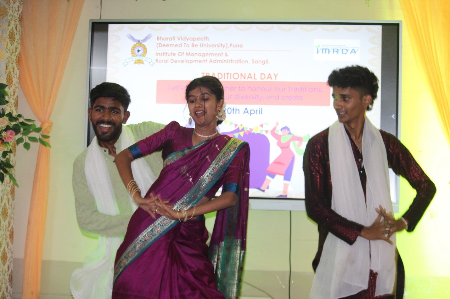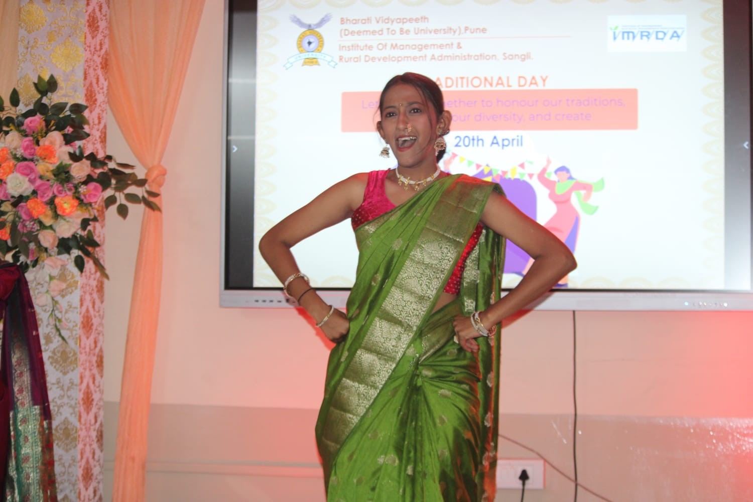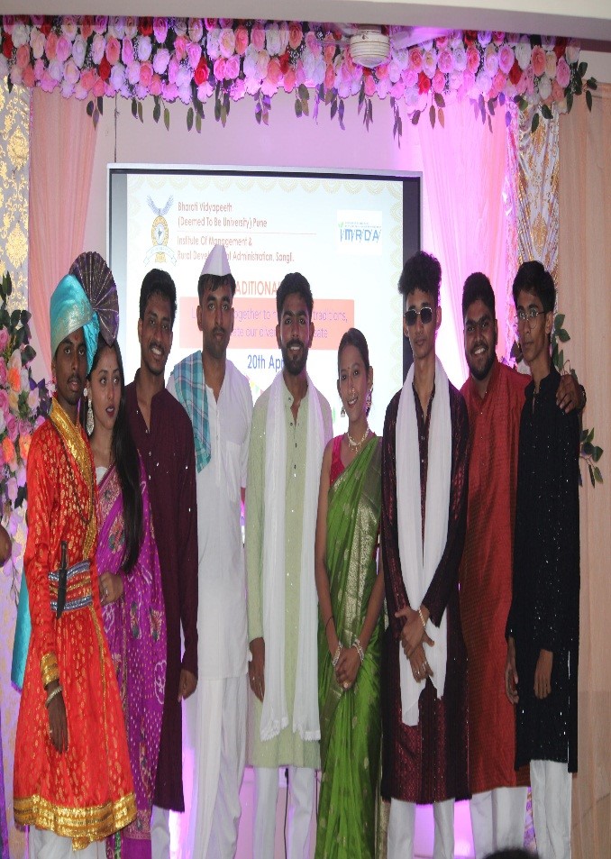 The institute ended the semester with Bollywood Day and Traditional Day on Friday and Saturday, 19th and 20th April 2024. Institute Alumnus and Famous Marathi Actor Mr. Amarnath Kharade was the chief guest for Bollywood Day. Director Dr. Pallavi Jamsandekar and Vice Principal Dr. Pratap Desai, Head of Computer Application department Dr. Rajendra Pujari and Head of Management Studies department Prof. Woodward Dexter guided in organizing the events. Dr. Suvarna Patil worked as event coordinator for Bollywood Day. Dr. Dhanashri Sahasrabudhhe and Dr. Ayesha Mujawar worked as event coordinators for Traditional Day.