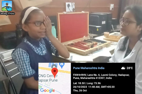 An eye screening camp was organized by Suzlon One Earth in association with Community Eye Care Foundation (Dr. Gogate’s Eye Clinic) and BV(DU) School of Optometry at Kalawati Kotwal Madhyamik Vidyalaya, Hadapsar, Pune on 26th October, 2023.
