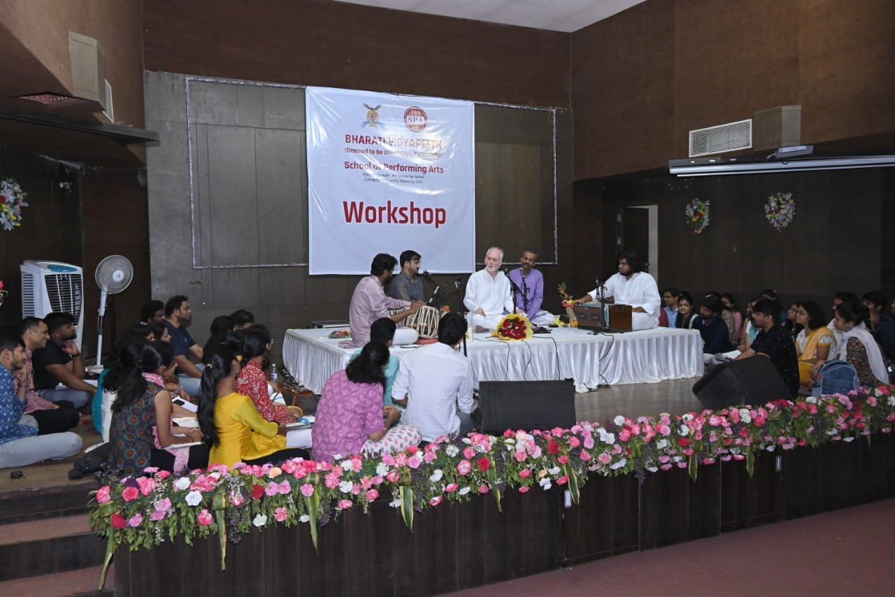 The legendary musician of Agra Gharana Pt. Arun Kashalkar conducted one day workshop in BVDU. School of Performing Arts on 06th March 2023. The workshop highlighted the intricacies of various Ragas which are included in the syllabus of B.A. and M.A. Music. He also taught various ‘Gharanedar Bandishes’ and some compositions penned by him. Renowned musicians and scholars also attended the workshop.